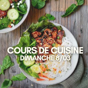 Au menu : Bún thịt nướng (vermicelles de riz, porc mariné grillé + boulettes, version végé possible) & Chè xoài sương sáo đen (perles de tapiocal à la mangue, lait de coco et gelée noire) !