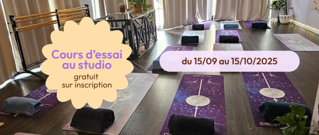 MERCI DE NE PAS VOUS INSCRIRE A PLUS DE 2 COURS D'ESSAI + de le faire sur des disciplines différentes, si vous vous inscrivez sur 2 cours de yoga par exemple c'est inutile, votre réservation sera automatiquement annulée).