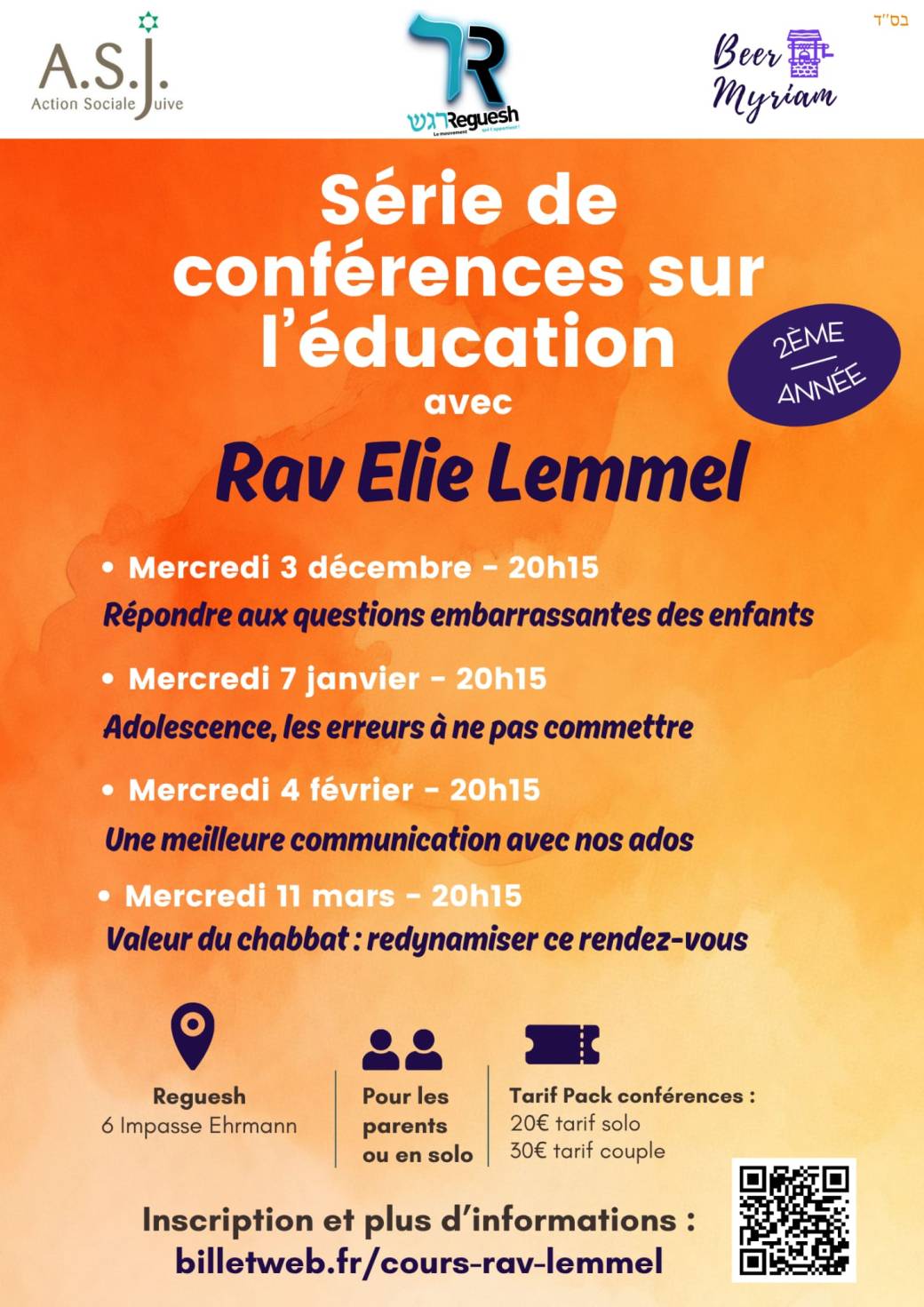 cette année nous vous proposons un nouveau cycle de conférence de Rav Elie Lemmel sur le thème de l'Éducation.