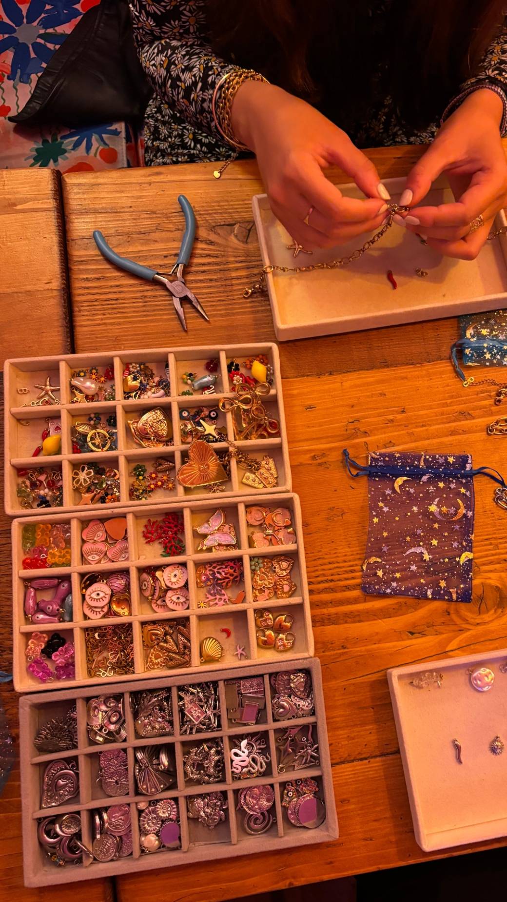 Durant cet atelier, tu auras l’occasion de créer un bracelet ou un collier que tu pourras personnaliser avec 5 charms soigneusement sélectionnés. Une activité qui te permettra de laisser libre cours à ta créativité tout en partageant un moment convivial avec d'autres femmes.