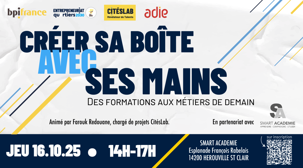 2025-10-16 14:00:002025-10-16 16:00:00Europe/Paris« Créer sa boîte avec les mains : des formations aux métiers de demain »Reservations on : https://www.billetweb.fr/creer-sa-boite-avec-les-mains-des-formations-aux-metiers-de-demain