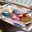Repas partagé le midi, tout le monde apporte quelque chose à mettre en commun.