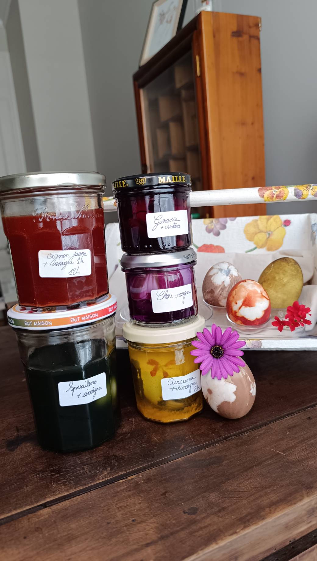 Tu repartiras avec plusieurs œufs teints, à conserver comme objets décoratifs ou à offrir, ainsi qu’une compréhension claire des étapes de la teinture végétale appliquée à ce support singulier.
