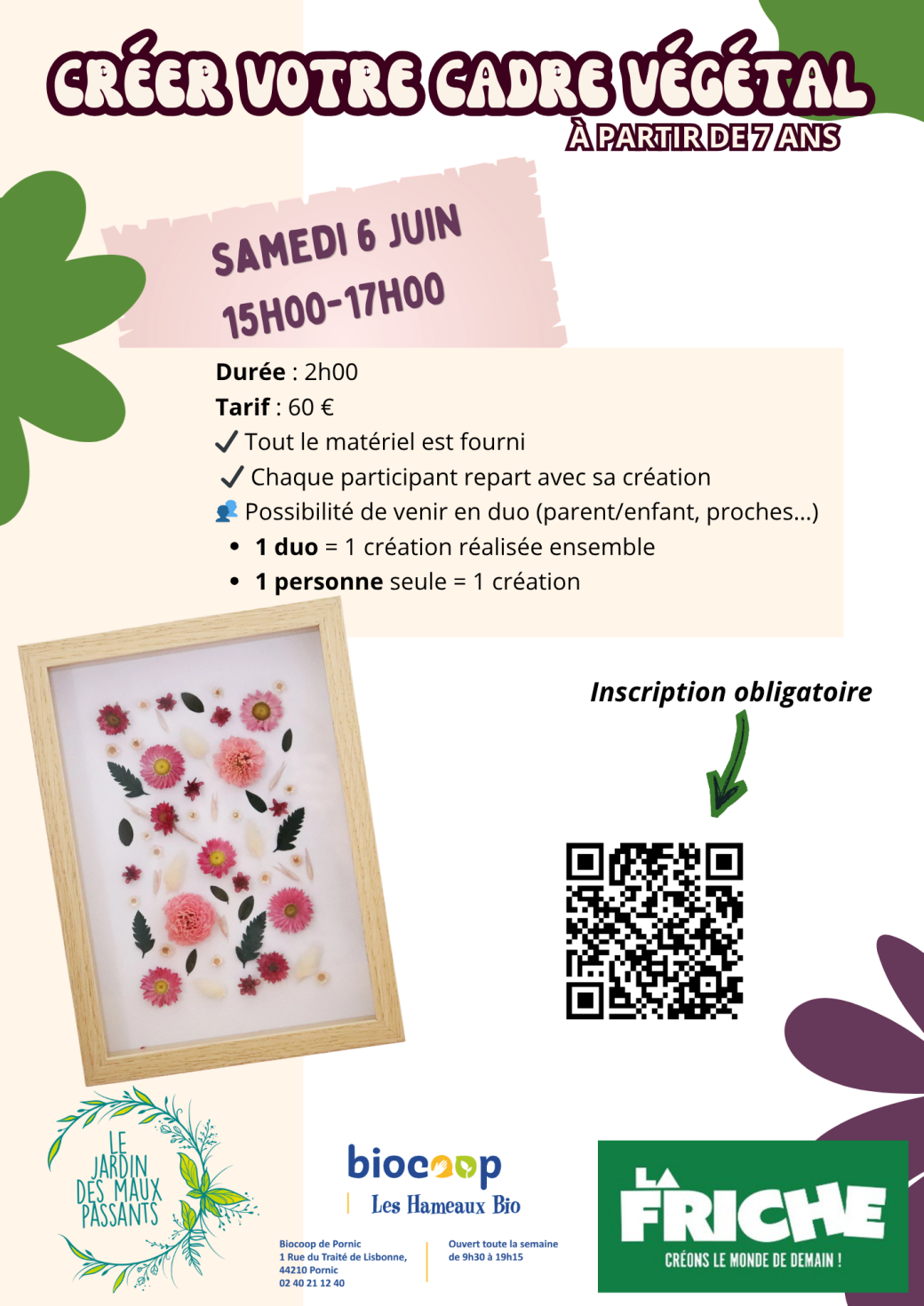 Créer votre cadre végétal avec Romane GLOTAIN, fondatrice du Jardin des Maux’passants, et repartez avec votre création chez vous !