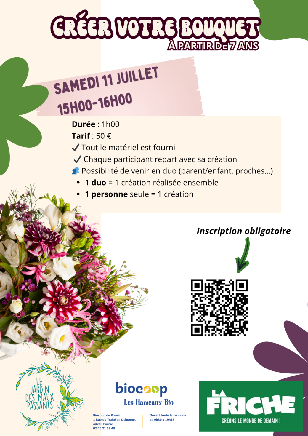2026-07-11 15:00:002026-07-11 16:00:00Europe/ParisCréer votre bouquetReservations on : https://lejardindesmauxpassants.com/