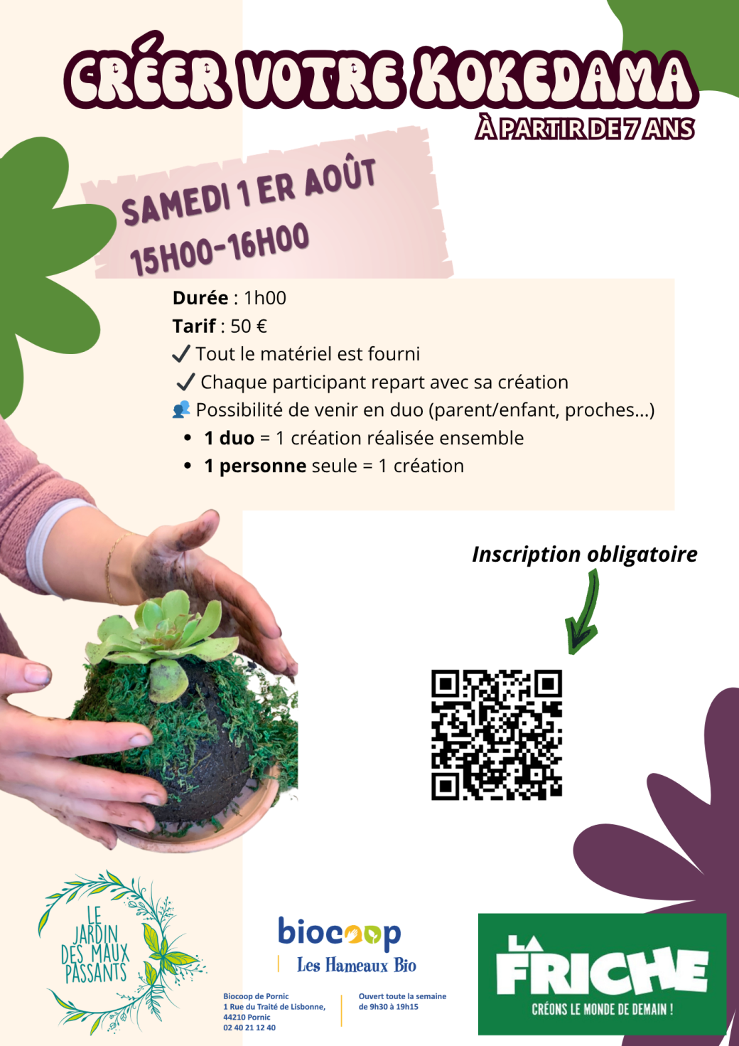 2026-08-01 15:00:002026-08-01 16:00:00Europe/ParisCréer votre KokedamaReservations on : https://lejardindesmauxpassants.com/