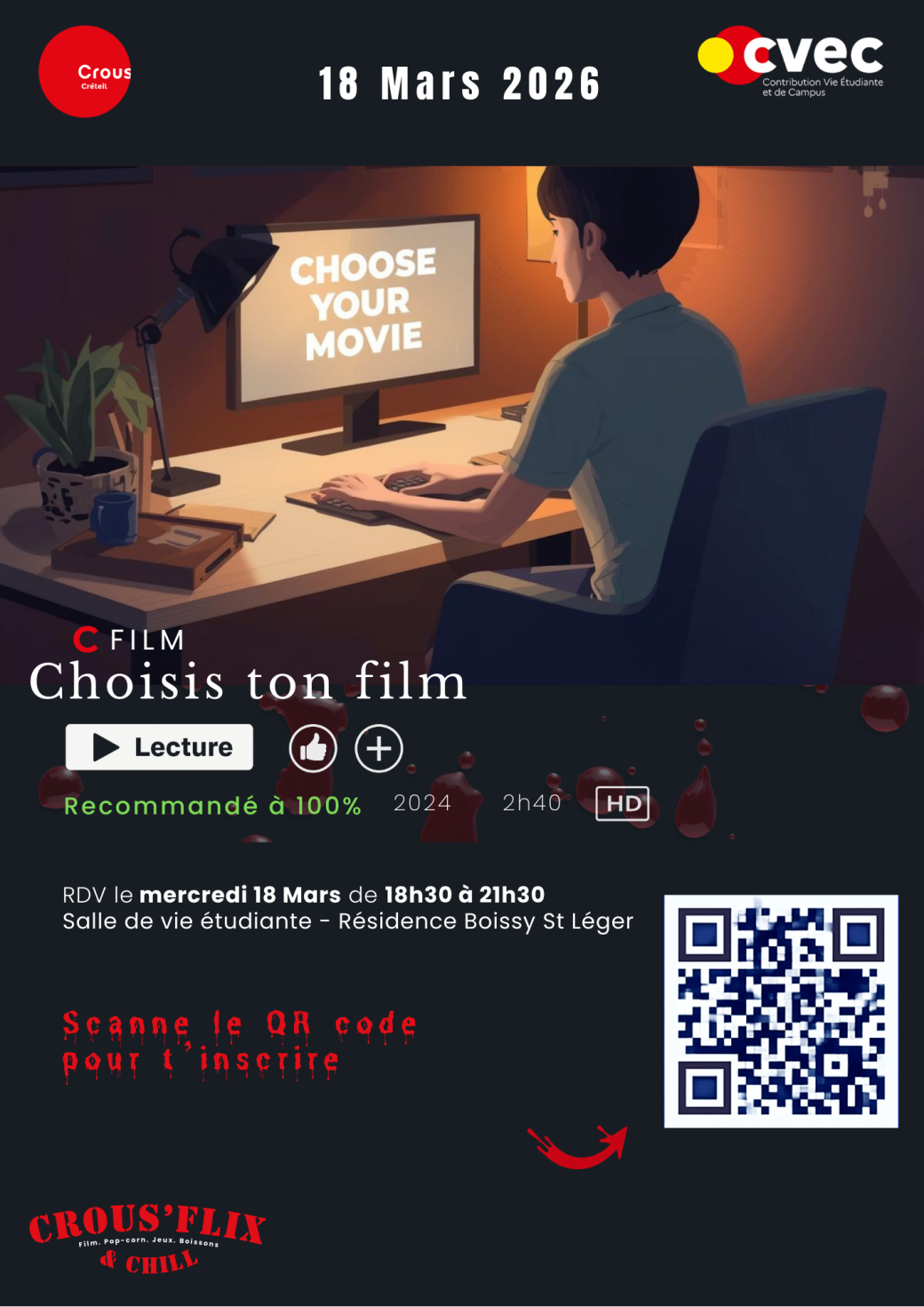 Nous nous retrouvons pour la première édition du Crous Flix au sein de votre résidence !