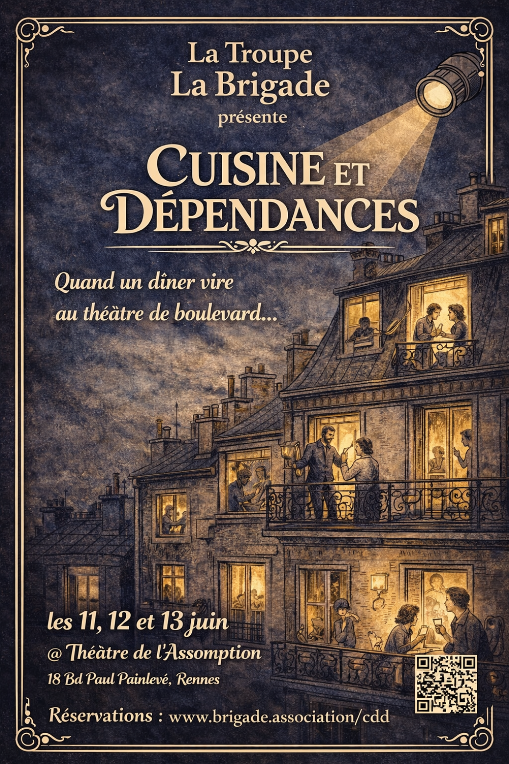 La troupe "La Brigade" est heureuse de vous présenter Cuisine et dépendances, comédie culte de Agnès Jaoui et Jean-Pierre Bacri.