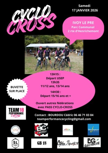 Le club TEAM18-Performance-Cycling organise son premier cyclo-cross à Ivoy le Pré le Samedi 17 Janvier 2026.