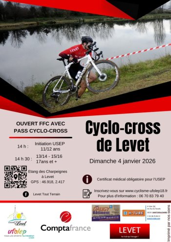 Le club du Levet TT organise son cyclo-cross habituel à l'étang des Charpeignes à Levet le Dimanche 4 Janvier 2026.