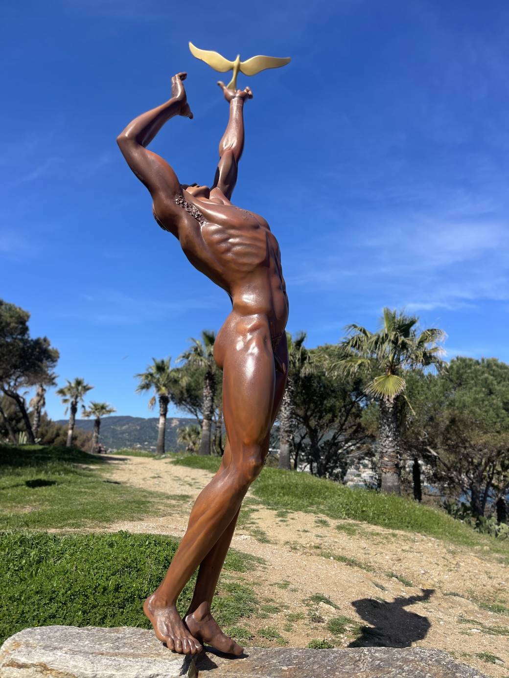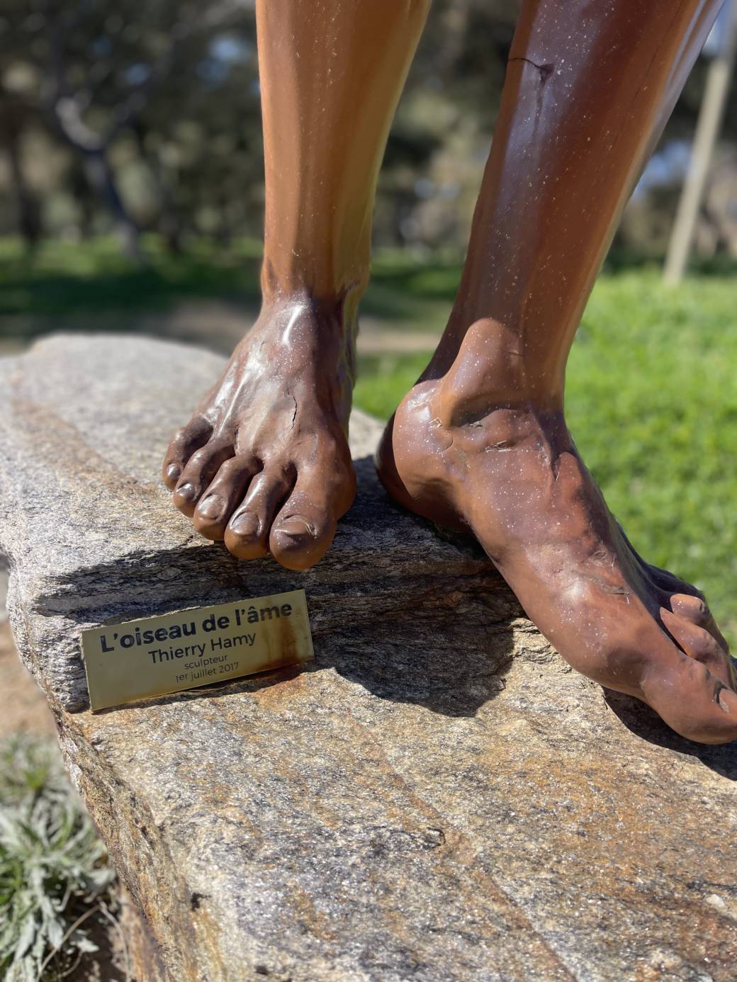Au dessus de la plage du Gouron à côté de la statut de l'oiseau de l'âme