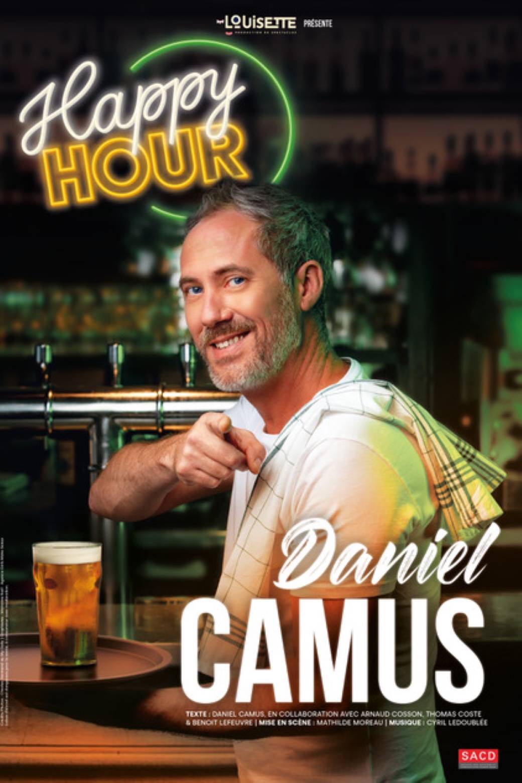 Daniel CAMUS, doux, attachant et drôle, nous fait passer une very HAPPY HOUR en mêlant humour, humeurs et humanité, le tout dans une super ambiance. Un spectacle de grande qualité que je garderai en mémoire parmi mes one man show préférés ! (Magalie38)