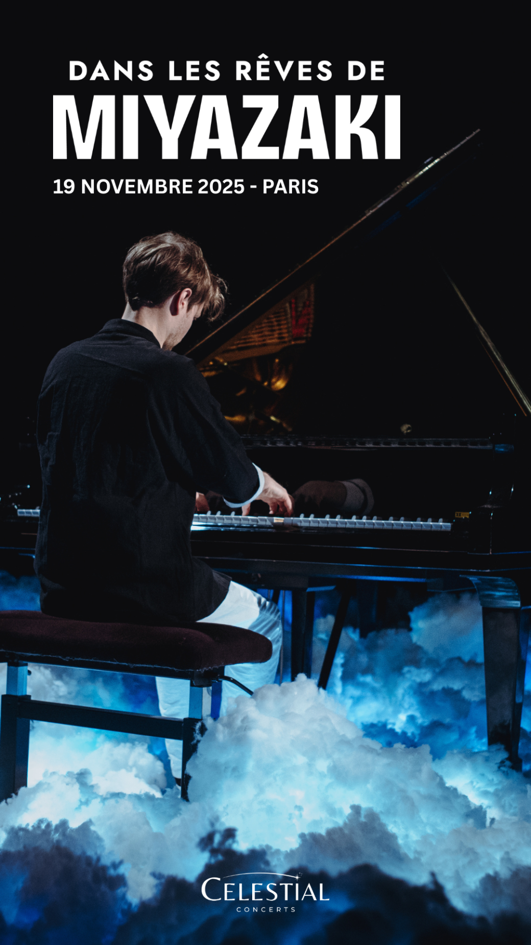 Imaginez-vous porté dans le ciel grace au pouvoir des mélodies envoutantes de Joe Hisaishi, le compositeur phare des films d'Hayao Miyazaki. Sous vos yeux, une scène formée de nuages sur laquelle le pianiste Guillaume Masson vous accompagne par la douceur de ses interprétations.