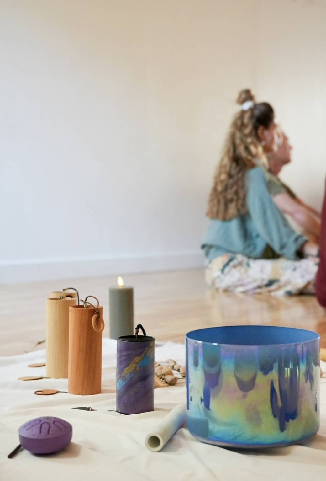 - Une relaxation sonore immersive à l’aide d’instruments (bols en cristal et tibétains, gong, carillons, tambour océan…)