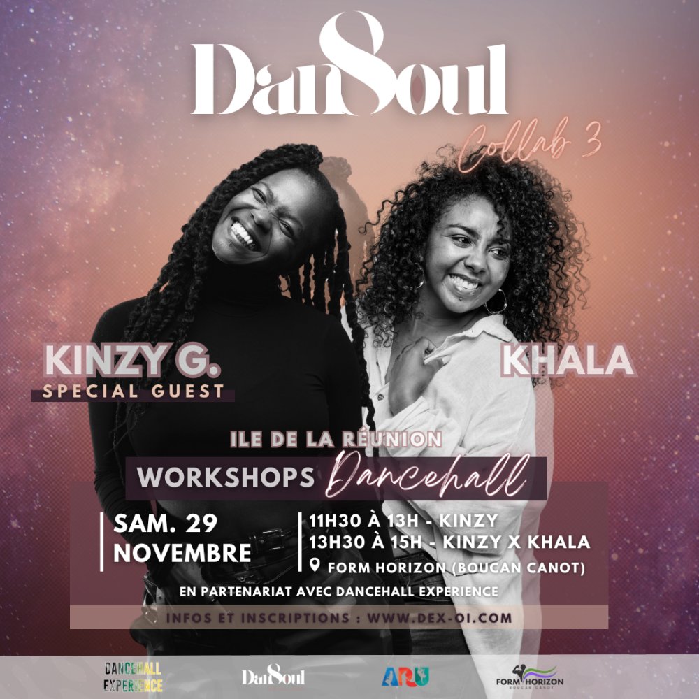 2025-11-29 11:30:00 2025-11-29 15:00:00 Indian/Reunion Dansoul Collab 3 Reservations on : https://www.billetweb.fr/dansoul-collab-31 -- Un concept créé par la danseuse KHALA, avec la collaboration de DEX. Simple et efficace, elle va à l'essentiel : 1 date, 1 collab Dancehall avec un.e artiste qui a touché sa sensibilité et qu'elle souhaite vous faire découvrir ou redécouvrir. Pas seulement le choix du coeur, mais surtout le choix de l'âme: Dance'Soul'Collab.   Pour l'édition 3, elle vous présente la danseuse Martiniquaise KINZY G. , qui a fait ses armes à Paris et à l'international. Elle marque les esprits à travers de nombreux Battles et Concours et est la Fondatrice de MADART VIBES qu'elle partage égalemment à l'international.   SEE YOU SOON !!!   FORM HORIZON, Place les Coquillages, Saint-Paul, La Réunion K.online