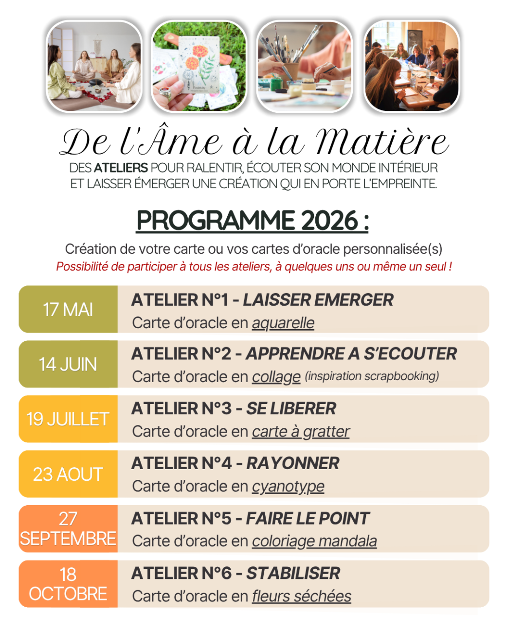 Retrouvez toutes les infos concernant les ateliers directement en images en bas de cette page, sur mon site internet en cliquant