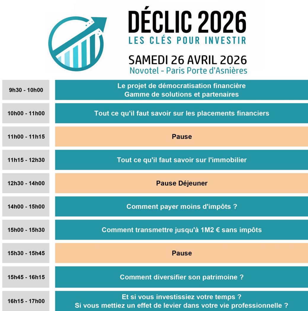 Déclic 2026 - Les Clés de l'Investissement, une journée entièrement consacrée à l'investissement ainsi qu'à vos prises de décisions personnelles et professionnelles.