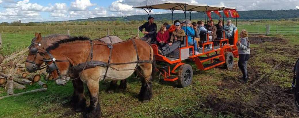 C’est un moment bucolique et feutré que le Parc vous propose. En partant de Saint-Aubin-sur-Quillebeuf, c’est au rythme du bruit cadencé des sabots des chevaux, confortablement installé dans une calèche de Roulotte en Seine Normande, que vous découvrirez les paysages du marais Vernier.