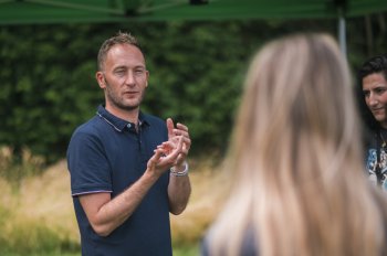 Jean-Nicolas présente le rucher à Axis Parc
