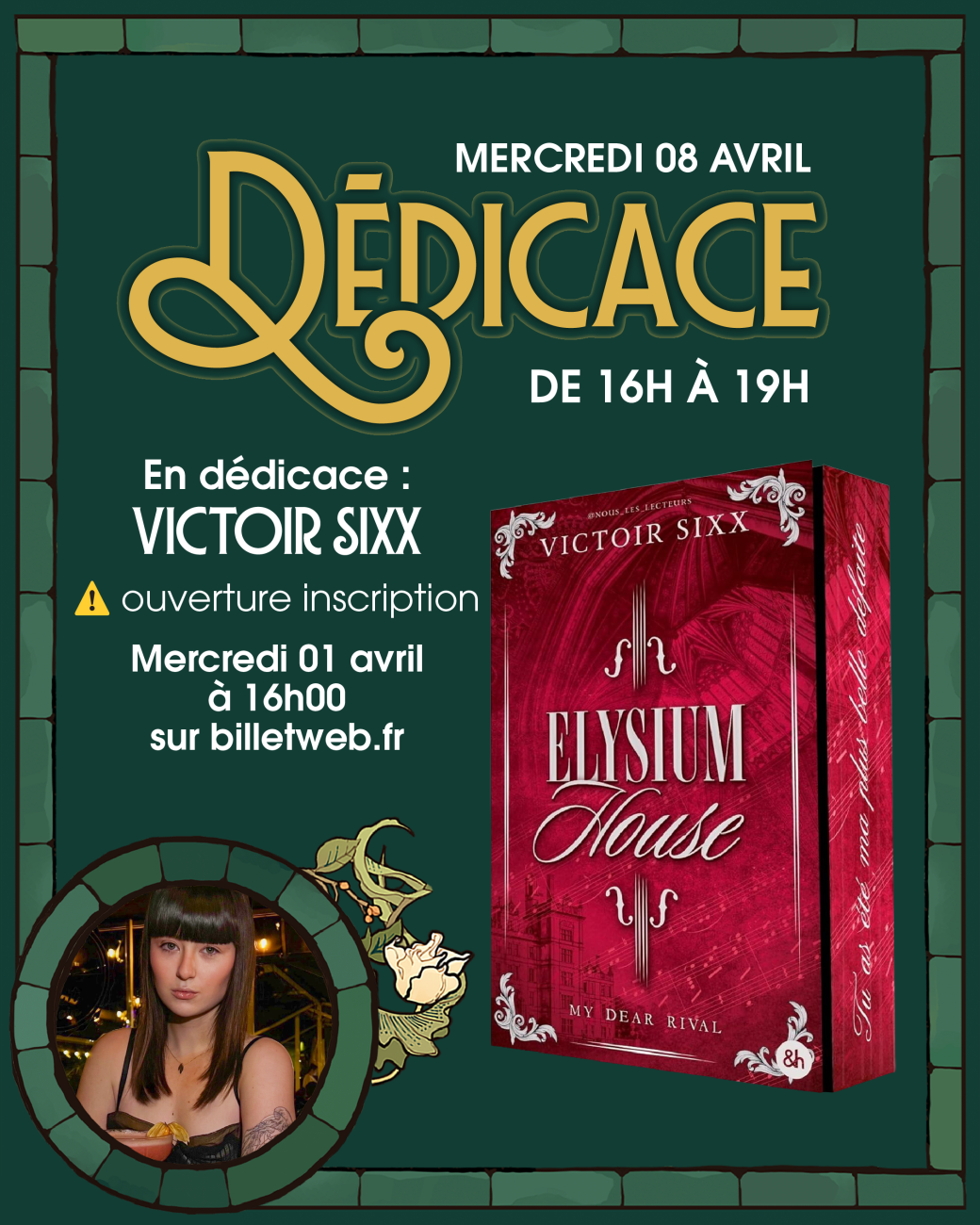 Reservations on : https://www.billetweb.fr/dedicace-elysum-house-avec-victoire-sixx --