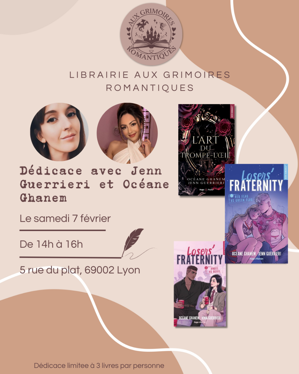 2026-02-07 14:00:002026-02-07 16:00:00Europe/ParisDédicace - Jenn Guerrieri et Océane Ghanem LyonReservations on : https://www.billetweb.fr/dedicace-jenn-guerrieri-et-oceane-ghanem-lyon1