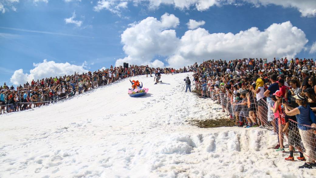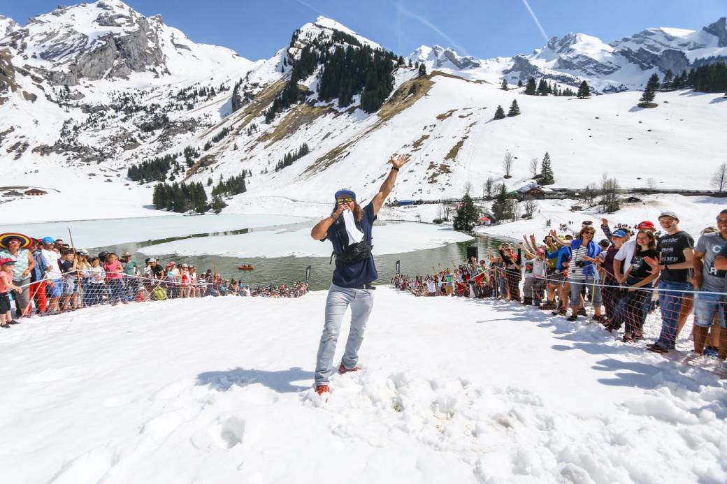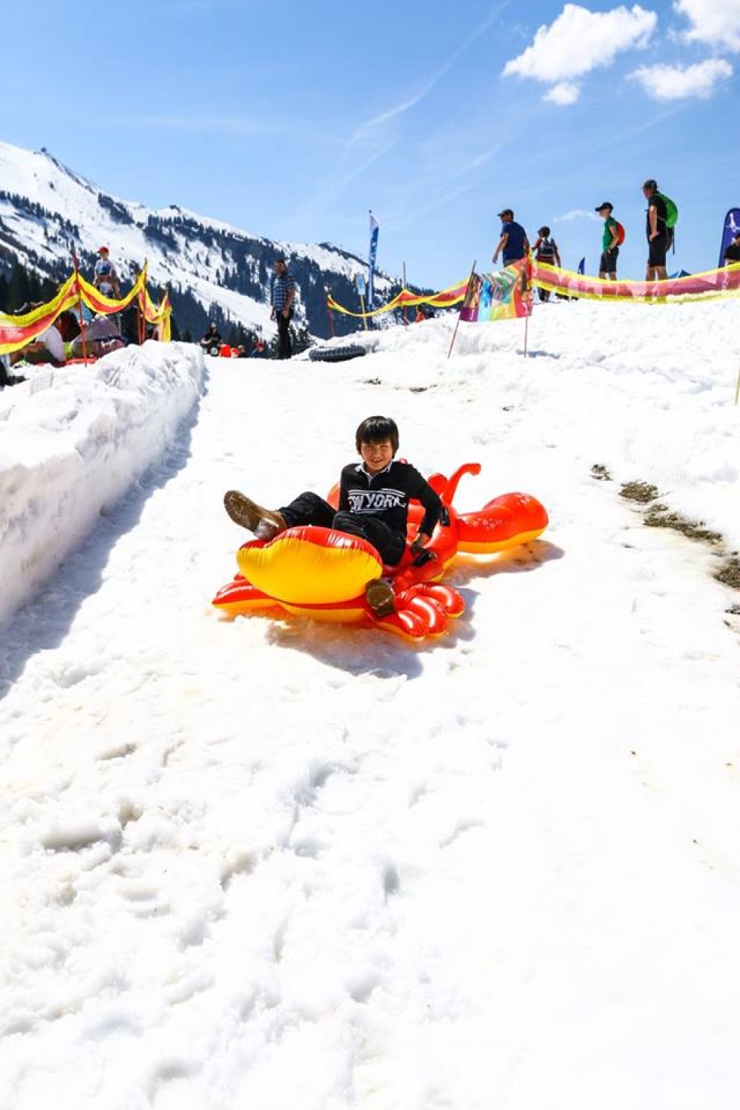Le waterslide c’est simple : après une prise d’élan sur pente raide et enneigée, il suffit de parcourir à ski, monoski, snowboard ou tout engin glissant, la plus grande distance sur le Lac des Confins ... Et d’essayer de battre le record de 155m acquit par Philippe TROUBAT en 2010 !