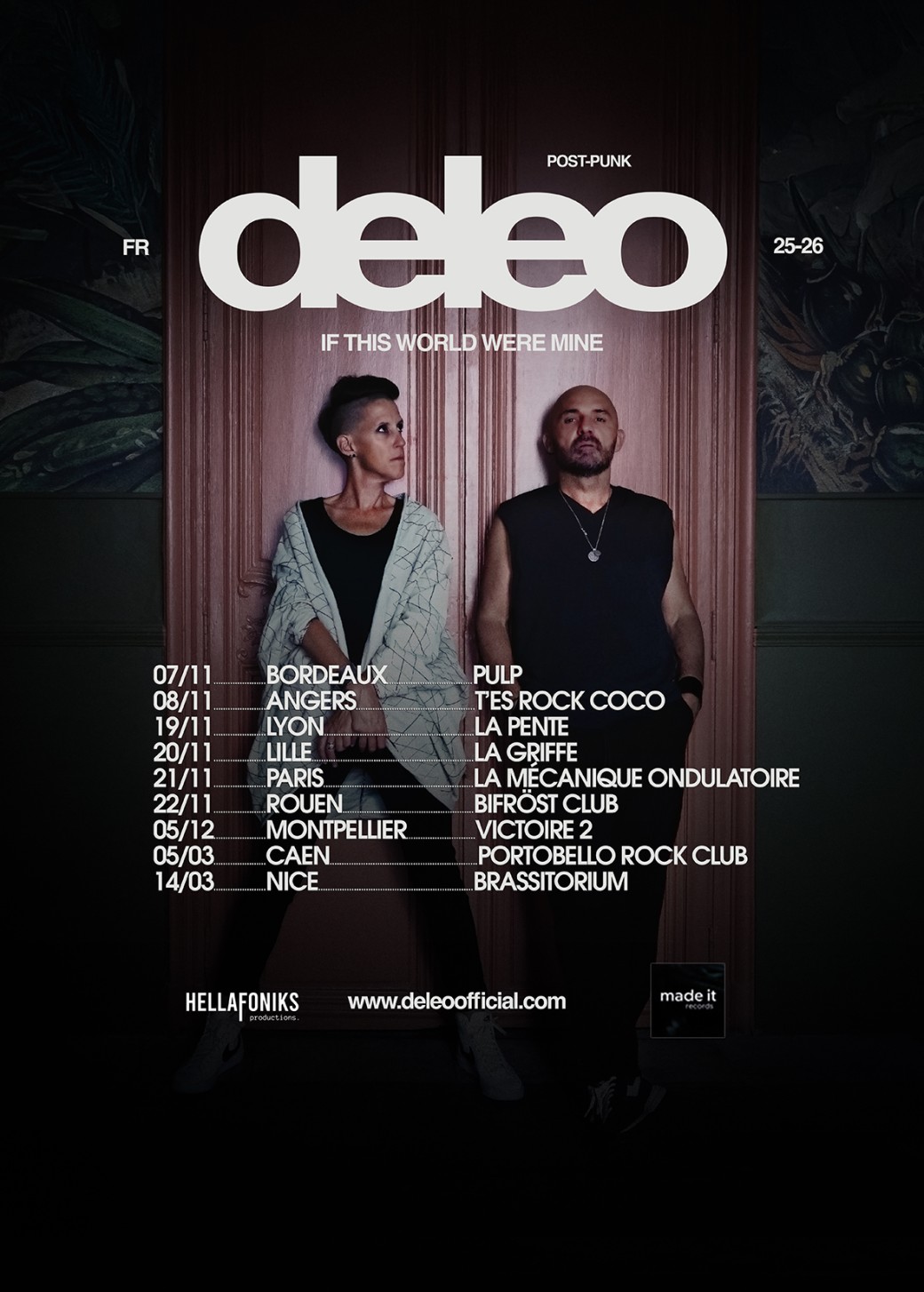 Deleo débarque à La Mécanique Ondulatoire pour fêter la sortie de son nouvel EP If This World Were Mine. Une soirée unique dans l’une des salles mythiques de la capitale, entouré de deux invités de choix : Cloudy Heads et Cassily. Trois univers, une seule promesse : une nuit brûlante de guitares, d’énergie et d’émotion.