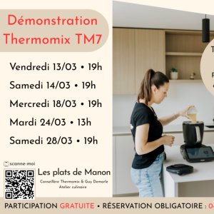 2026-03-18 19:00:002026-03-18 22:00:00Europe/BrusselsDémonstration Thermomix TM7Reservations on : https://www.billetweb.fr/demonstration-thermomix-tm7
