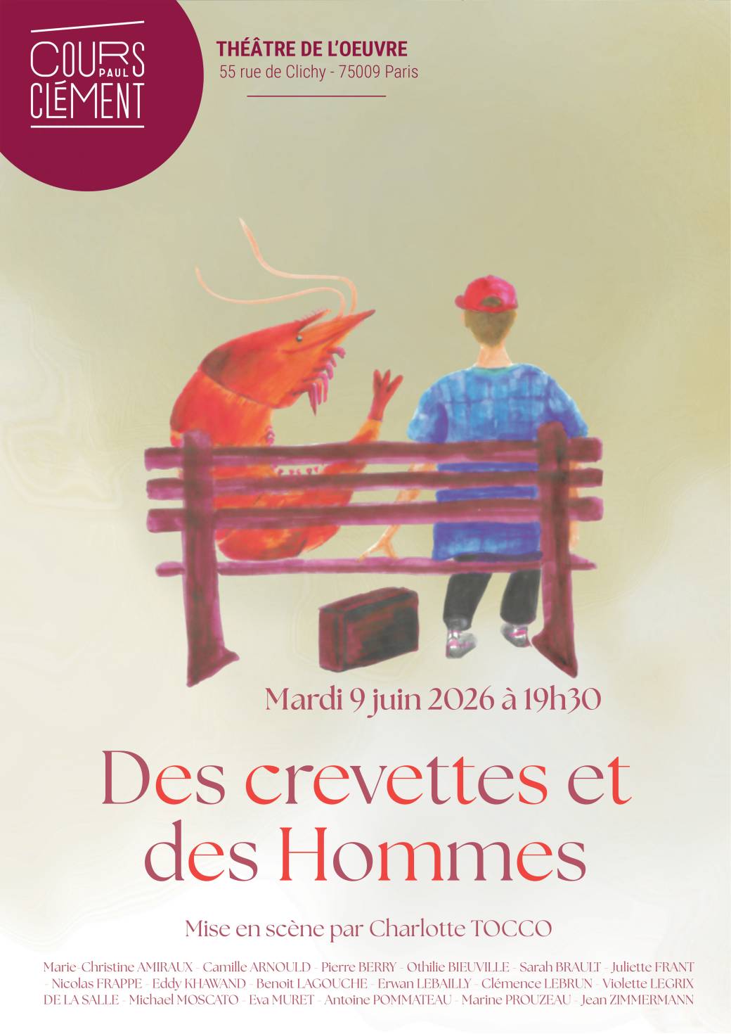 AMIRAUX Marie-Christine - ARNOULD Camille - BERRY Pierre - BIEUVILLE Othilie - BRAULT Sarah - FRANT Juliette - FRAPPE Nicolas - KHAWAND Eddy - LAGOUCHE Benoît - LEBAILLY Erwan - LEBRUN Clémence - LEGRIX Violette - MOSCATO Michael - MURET Eva -…Théâtre de l'Œuvre, Rue de Clichy, Paris, FranceCours Clément