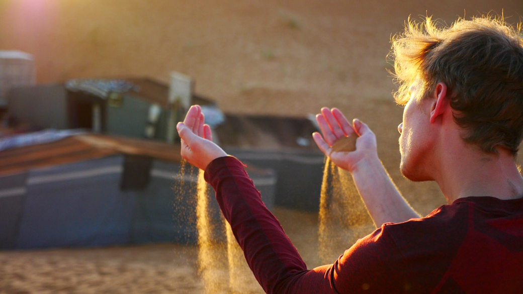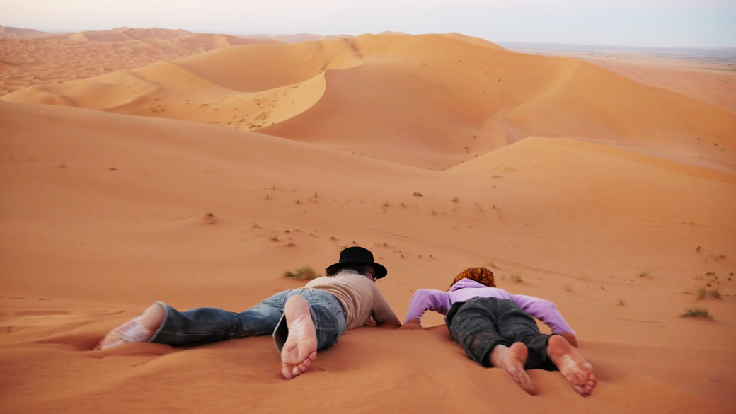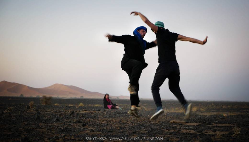 Merzouga Desert is filled with magestuous stary sky and the high dunes are amazing dance and play grounds for our explorations.