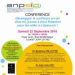 2018-09-22 10:00:00 2018-09-22 18:00:00 Europe/Paris Développer la confiance en soi chez les jeunes à Haut Potentiel pour les aider à s'épanouir ! Reservations on : https://www.billetweb.fr/developper-la-confiance-en-soi-chez-les-jeunes-a-haut-potentiel-pour-les-aider-a-sepanouir -- Les enfants et adolescents de moins de 12 ans ne seront pas autorisés à assister à la conférence. Foyer Rural De Saint Jory, Rue de Montségur, Saint-Jory, France MAS