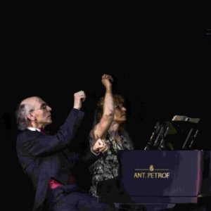 Les deux pianistes (Renata Lichnovská et Igor Ardaševovi) interprètent simultanément, sur le même instrument, un extrait de l’œuvre la plus célèbre du compositeur tchèque Bedřich Smetana, l’inimitable Má vlast (Ma patrie), ainsi que nombre de ses autres compositions.