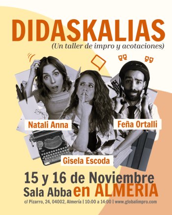 Gestionar todos los elementos de una impro puede ser abrumador. Por eso, en este taller exploraremos los distintos tipos de didascalias que encontramos en el teatro universal y cómo se pueden adaptar al trabajo improvisado para ayudarnos a crear la dramaturgia de manera conjunta aliviando a los improvisadores en escena.