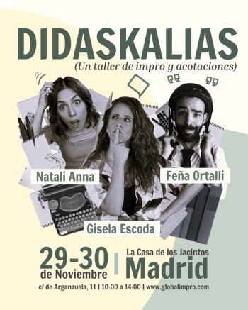 Gestionar todos los elementos de una impro puede ser abrumador. Por eso, en este taller exploraremos los distintos tipos de didascalias que encontramos en el teatro universal y cómo se pueden adaptar al trabajo improvisado para ayudarnos a crear la dramaturgia de manera conjunta aliviando a los improvisadores en escena.