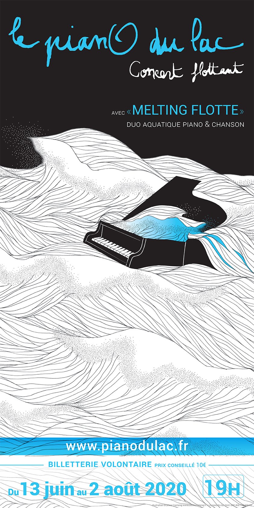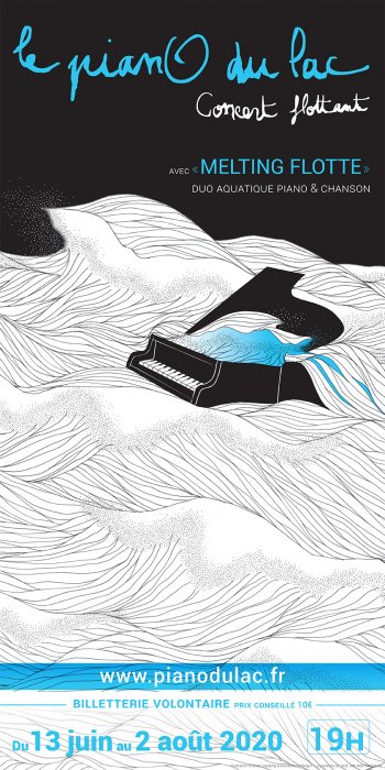 De lac en lac, d'étang en rivière, de port en rivages, laissez-vous enchanter par ce duo poétique inattendu. L'image peut paraître surréaliste mais l'embarcation du pianO du lac, un demi-queue, flotte bel et bien… et la pianiste joue les pieds dans l'eau !