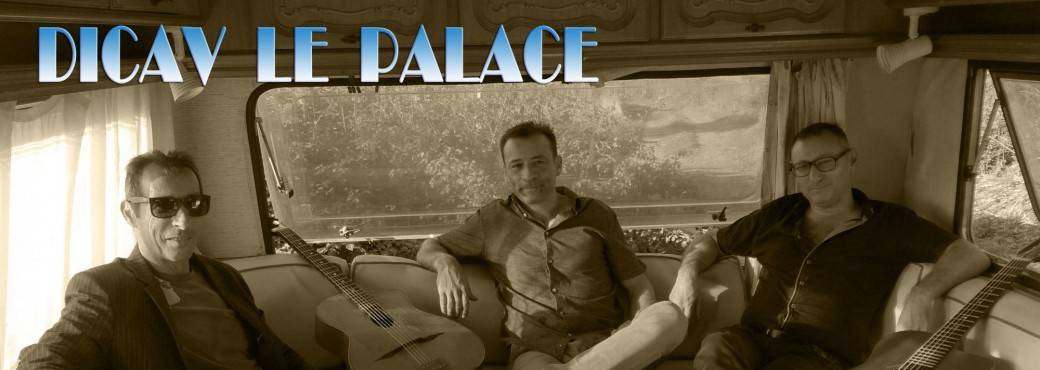 DICAV LE PALACE c'est frais comme  les puces le dimanche à Saint Ouen un matin d'automne, ça balance comme les cyprès dans la brise de printemps, ça bombarde comme une pluie d'été, ça réchauffe l'âme comme un bon vieux feu de camps à l'entrée de l'hiver. Mais c'est pas du Vivaldi, c'est du SWING GITAN, du vrai. En trio (2 guitares, Contrebasse)