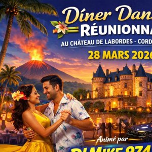 Reservations on : https://www.billetweb.fr/diner-dansant-theme-ambiance-reunionnaise-28-mars-2026-chateau-de-laborde --
