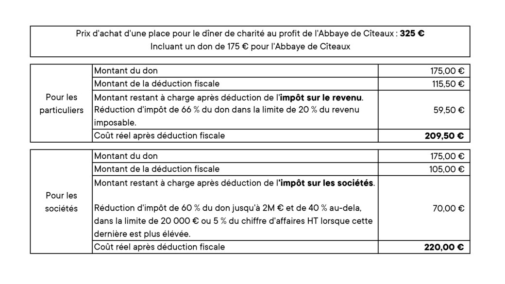 au profit de la restauration du Définitoire de l’Abbaye de Cîteaux