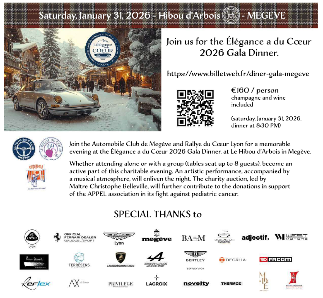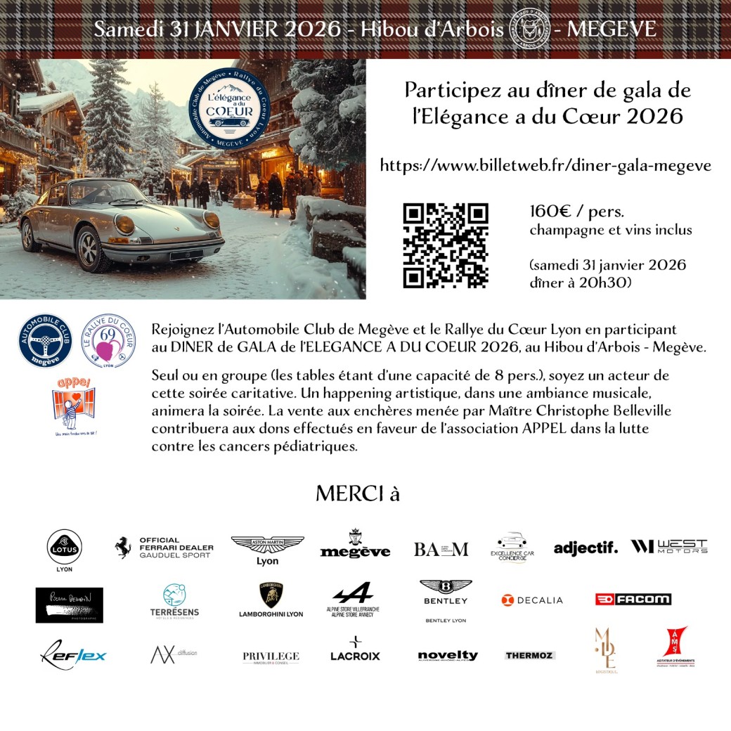 2026-01-31 20:30:002026-01-31 23:30:00Europe/ParisDiner Gala Megève 20h30Reservations on : https://eleganceaducoeur.lerallyeducoeur.com/
