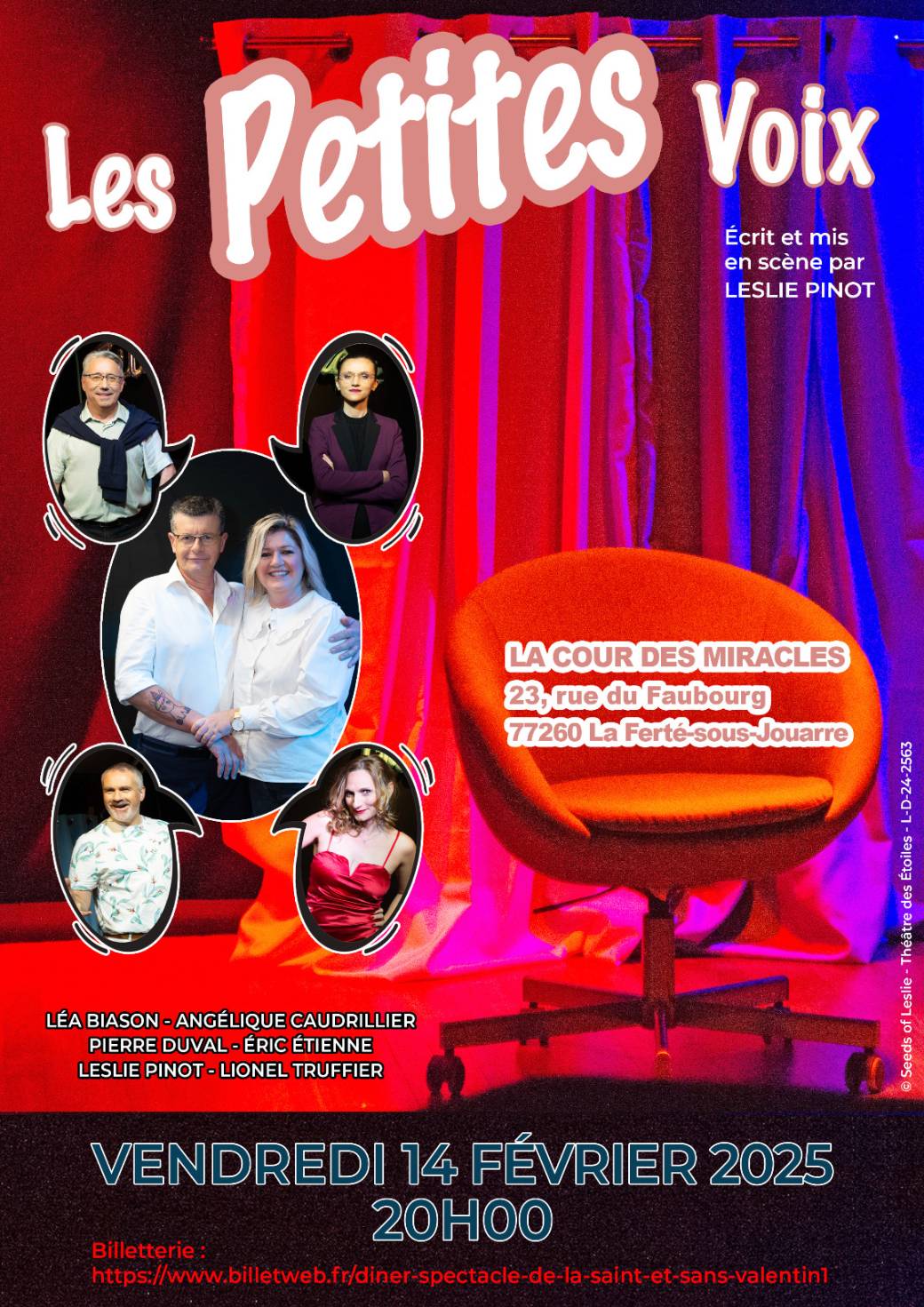 Comédie de boulevard ! La vie à deux et ses vicissitudes ! L’homme et la femme dans le couple, face à leurs vérités, à leurs besoins et à leurs attentes conscientes et inconscientes… Un savoureux mélange animé et arbitré par leurs petites voix… Ces voix intérieures que l’on écoute ou que l’on oublie parfois. Une sorte d’instinct parfois complice, parfois contradictoire… Tantôt bienveillant, tantôt tolérant, tantôt conquérant, tantôt désespéré, tantôt épris de liberté et d’authenticité !