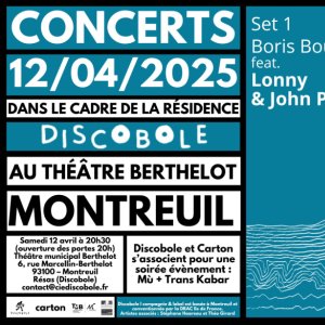 2025-04-12 20:00:002025-04-12 23:30:00Europe/ParisDiscobole Party Avril 2025 : Mù (Boublil, Lonny, John Parish) & Trans KabarReservations on : https://www.billetweb.fr/discobole-party-avril-2025-mu-boublil-lonny-john-parish-trans-kabar
