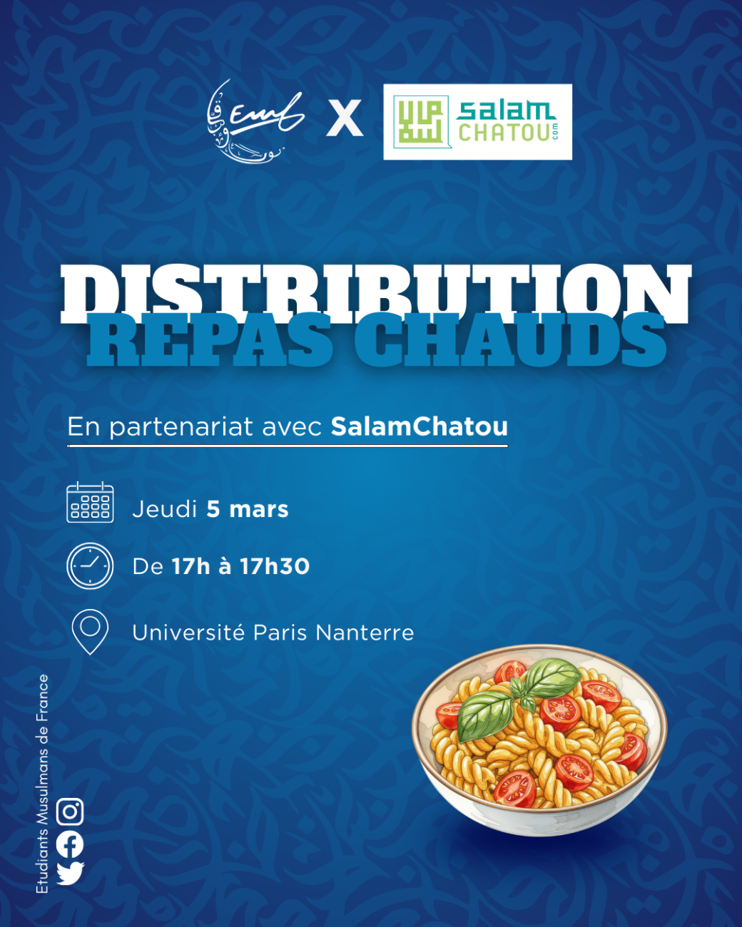 2026-02-26 17:00:002026-02-26 17:30:00Europe/ParisDistribution de repas chauds x SalamChatou 05/03Reservations on : https://www.billetweb.fr/distribution-de-repas-chauds-x-salamchatou-05-03