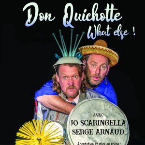 Alonso Quijano doit accueillir René Sens, bénévole pour l'association "les enfants de Don Quichotte", venu débarrasser l'appartement de son père. Passionné de romans de chevalerie, il passe son temps à déclamer des vers oubliant d'aider à l'enlèvement des cartons. René, perd patience et l'assomme. Le choc libère le délire schizophrène d'Alonso, revenu à lui sous l'identité de Don Quichotte, célèbre chevalier errant du roman épique. Débute alors une épopée surréaliste. René est entraîné, impuissant dans cette folie, se voyant transformé en de multiple personnages. Il passera d'Antonia à Sancho Panza et du barbier de la ville à Samson Carrasco dans un rythme effréné. Pris au piège de la quête romantique du chevalier, il accompagnera Alonso, devenu Don Quichotte dans ses combats imaginaires pour l'amour de la belle Dulcinée de Toboso... C'est une aventure haletante et lyrique qui vous attend. Vous assisterez à des scènes de combats de haute voltige entrecoupées de romantisme, de poésie et de chansons.
