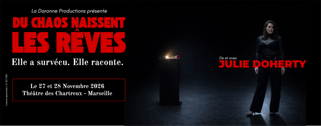 2026-11-27 20:00:002026-11-28 20:00:00Europe/ParisDu chaos naissent les rêves - MarseilleReservations on : https://juliedoherty.fr/
