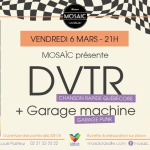 2026-03-06 20:15:002026-03-06 23:30:00Europe/ParisDVTR + Garage Machine // MOSAIC LA SALLEReservations on : https://www.billetweb.fr/dvtr-garage-machine-mosaic-la-salle