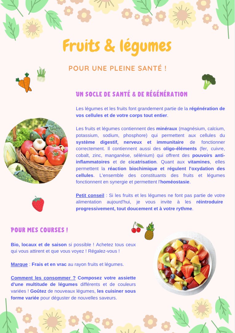 Je vous invite à découvrir ce guide complet qui sera source d'un magnifique accompagnement lors de vos courses et de vos repas sains, avec beaucoup de bonheur et d'amour !