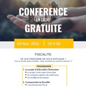2025-11-04 20:00:002025-11-04 21:15:00Europe/ParisE-Conférence : Comprendre et maîtriser sa fiscalitéReservations on : https://www.billetweb.fr/e-conference-comprendre-et-maitriser-sa-fiscalite