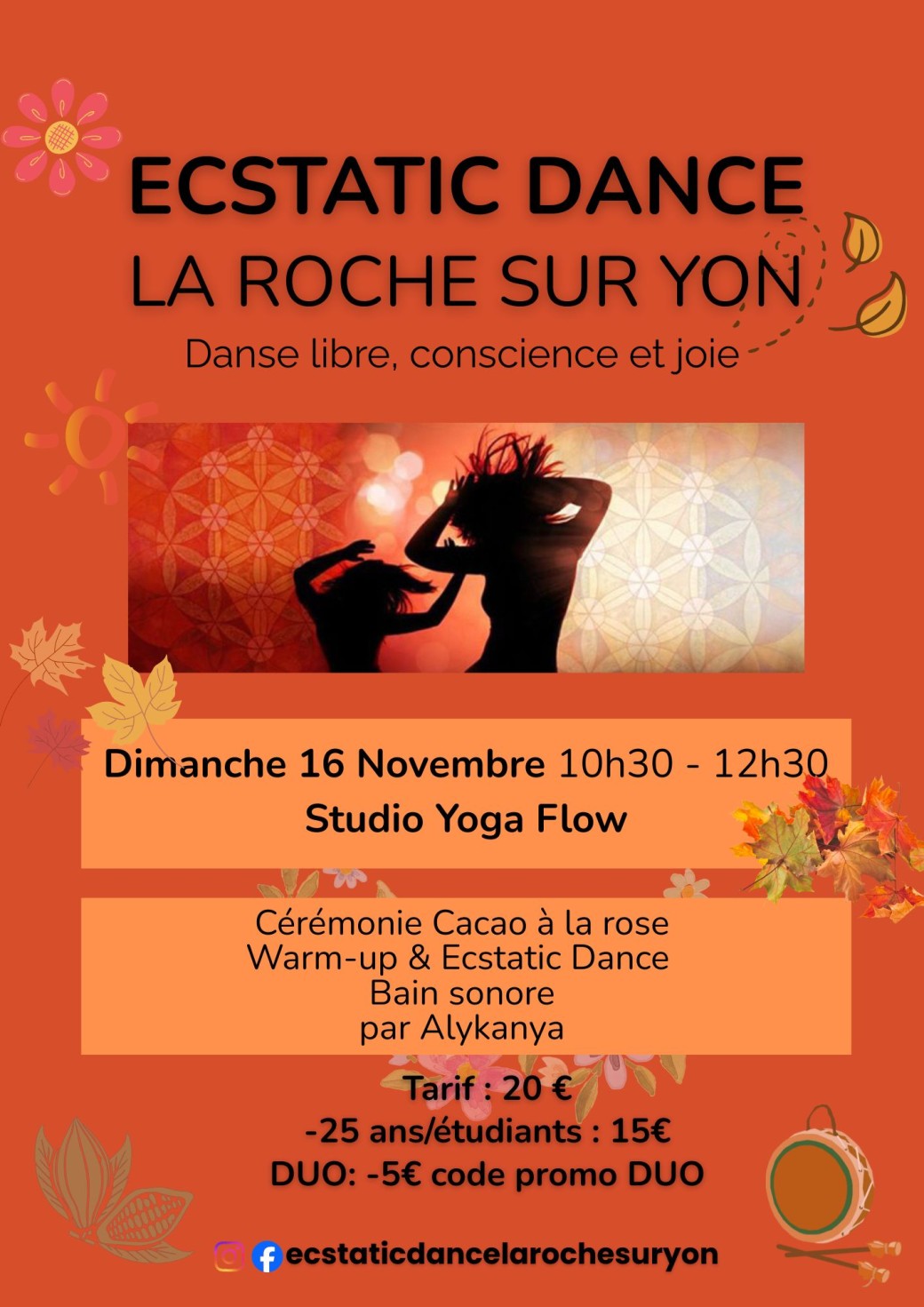 Rendez-vous dimanche 16 Novembre au Studio Yoga Flow, La Roche-sur-Yon, pour la 3ème Ecstatic Dance de la saison !