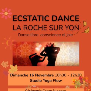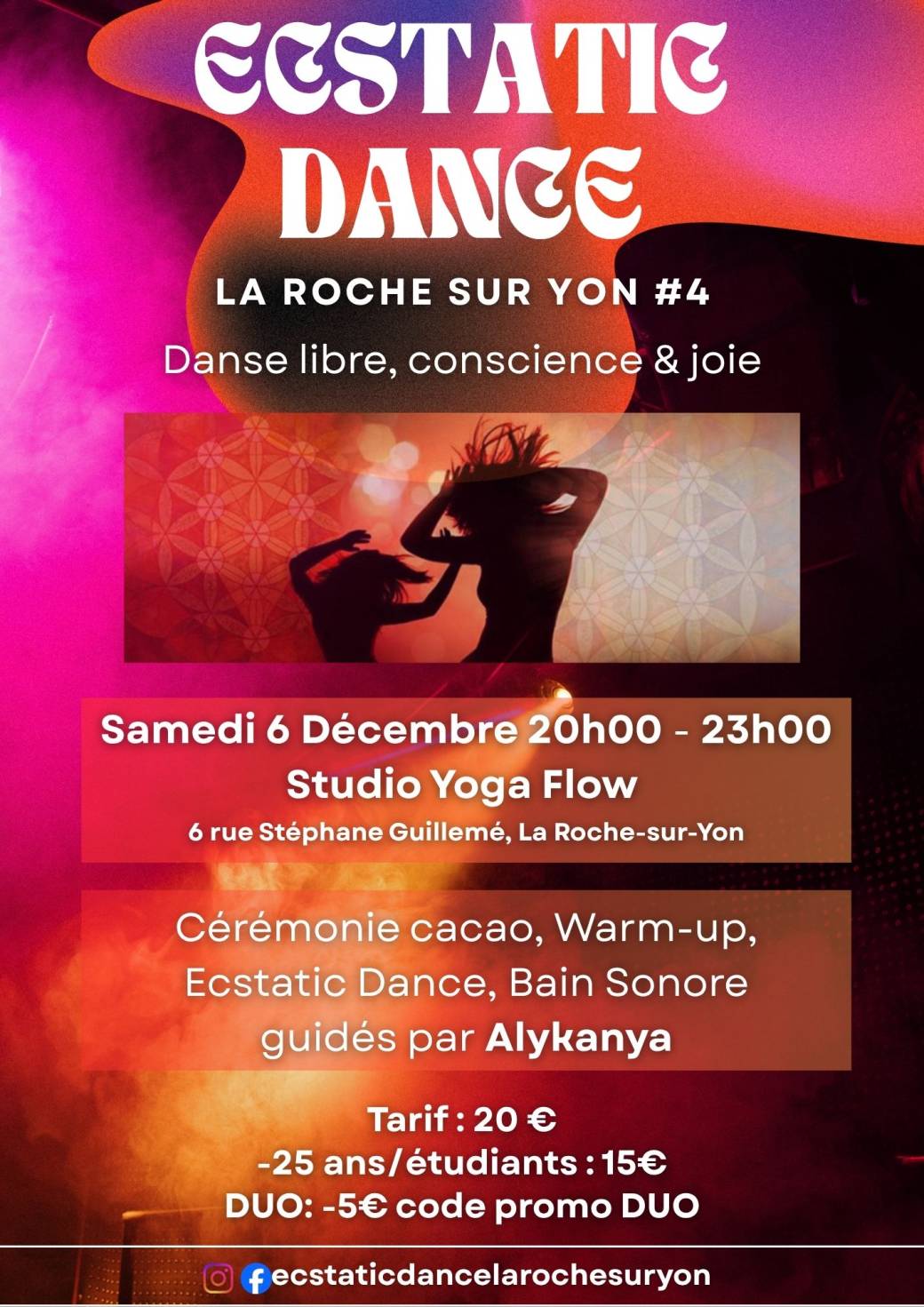 Rendez-vous Samedi 6 Décembre au Studio Yoga Flow, La Roche-sur-Yon, pour la 4ème Ecstatic Dance de la saison !