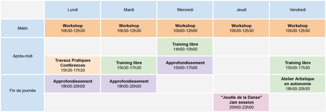 Sessions hebdomadaires de 22 heures par semaine :